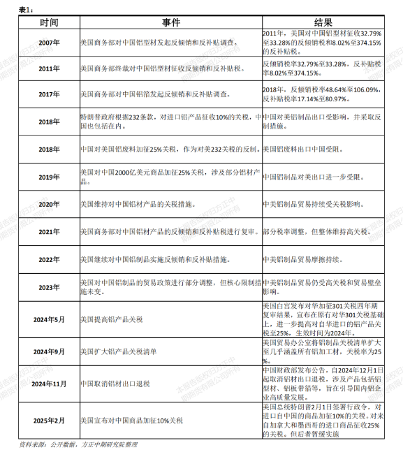 特朗普加征关税政策曾经部门实施,但将来能否全面实施以及实施的具体程度仍存正在不确定性。特朗普正在2025年2月1日曾经签订行政令,对进口自中国的商品加征10%的关税,这一政策曾经落地实施。同时,他还打算对进口自墨西哥、的商品加征关税,但随后又签订了行政号令,暂缓对这两国商品的关税实施,将时间推迟到2025年3月4日,并暗示这取决于美国北部边境场面地步的成长。此外,特朗普正在竞选期间曾要对所有进口商品征收高额关税,以至对中国的进口产物征收高达60%的关税,但这些建议能否实的会全面实施仍然存正在疑问。标普全球评级公司正在演讲中就指出,特朗普的关税建议可能不会全面实施,但可能成为他构和时的起点。中国社科院金融研究所副所长张明也估计,特朗普可能会正在本年二三季度之交加征新一轮关税,但具体税率和商品范畴仍存正在不确定性因而,特朗普加征关税政策曾经部门实施,但将来能否全面实施以及实施的具体程度将取决于多种要素,包罗美国国内经济形势、国际商业以及特朗普的决策等。“301查询拜访”是美国根据“301条目”进行的查询拜访。该法历经多次点窜,比来一次点窜为《1988年分析商业取合作法》。按照“301条目”,美国商业代表办公室(USTR)可对他国“不合理或不商业做法”倡议查询拜访,并可取相关国度协商,正在查询拜访和协商竣事后美国总统启动单边性、强制性的报仇办法,包罗撤销商业优惠、征收报仇性关税、进口、遏制相关协定等。2023年,中国向美国出口铝产物共计69。3万吨。此中,部门产物已受“301”附加关税影响,税率为25%;还有部门产物税率为0%或7。5%。2024年5月14日,美国发布对华加征“301”附加税四年期复审成果,打算将“301”办法下附加税率为0%或7。5%的铝产物税率提拔至25%。此次附加税提拔估计涉及“301”办法第四批,即3000亿美元清单中附加关税为0%或7。5%的商品,包罗废铝及铝粉以外的所有铝及铝材产物,以及部门铝成品。2024年9月27日,美国商务部颁布发表对进口自中国等13国及中国地域的铝型材做出反推销终裁,裁定中国享有零丁税率出产商/出口商的推销率均为4。25%(抵消补助后的金率调整为0。00%),不合做企业推销率为376。85%(抵消补助后的金率调整为365。13%)。2024年10月22日,美国商务部发布通知布告,对原产于中国的进口一次性铝制容器、平底锅、托盘和盖子(铝制餐具)做出反补助初裁,裁定中国涉案企业的补助率为78。12%~312。91%。终裁将于2025年3月4日进行。同时,美国商务部对进口自中国、印度尼西亚、墨西哥和土耳其4国的铝型材也做出了反补助终裁,裁定中国出产商/出口商税率为14。56%-168。81%。2018年3月,时任美国总统特朗普按照美国《1962年商业扩展法》第232条目,认为由对进口钢铁和铝产物别离加征25%和10%的关税。该办法也对中国铝产物出口发生了影响。中国就此向世界商业组织(WTO)提起,2022年12月,WTO发布了争端处理机制专家组演讲,裁定2018年美国对进口钢铝产物加征关税的办法违反WTO法则。起首,特朗普正在2025年2月1日签订的行政号令中,颁布发表对所有自中国进口的商品加征10%的赏罚性关税,这一政策间接影响了我国铝材对美国的出口。因为关税的添加,我国铝材正在美国市场的合作力下降,将间接导致出口量削减。其次,特朗普的关税政策还影响了我国铝材通过其他国度转口至美国的商业。例如,墨西哥和是我国铝材的主要出口市场,但这两个国度均对我国铝材征收了较高的关税。正在特朗普打算的关税政策之下,通过墨西哥和对美国出口铝材涉及两国关税及美国对华加征的关税,这添加了我国铝材转口至美国的成本和难度。汗青上,我国对墨西哥和出口铝材和铝成品涉及转口商业至美国的量级相对较小,但这一关税政策无疑进一步了我国铝材通过转口商业进入美国市场的可能性。美国自2018年起对中国铝材加征关税,导致中国铝材对美出口遭到冲击。2018-2023年期间,美国自华进口合计下降约9。9个百分点,中国铝材正在美国市场的份额有所下滑。2024年,美国进一步提高铝产物关税至25%,几乎涵盖所有铝加工材。这使得中国对美铝材出口面对更高的成本和更严酷的。2024年一季度,对美出口未锻轧铝及铝材仅6。7万吨,占总出口量的4。5%。若是2025年美国对中国铝材和铝成品的关税税率进一步提高至35%、48%或60%,估计对铝总出口消费的影响量别离为13。2万吨、16。2万吨和21万吨,对应铝元素出口影响占总消费的0。31%-0。49%。虽然对美出口受阻,但中国铝材出口企业积极开辟其他海外市场,如亚洲、欧洲、南美洲等地域,出口市场多元化趋向较着。2024年1-9月,中国铝材累计产量达到5035。5万吨,同比增加8。0%,此中出口占比约为9。2%,表白中国铝材正在全球其他市场的出口仍连结必然增加。美国加征关税和中国打消铝材出口退税政策,均添加了企业的出口成本。企业需要正在原材料采购、出产加工、物流运输等环节进行优化,以降低成本,同时还要应对价钱波动风险。企业为了维持市场份额,不得不自行消化部门关税成本,压缩了利润空间。并且商业摩擦导致部门原材料供应渠道受阻,企业需要寻找替代供应商,添加了原材料采购成本和供应风险。商业摩擦使中国铝材出口企业面对更大的市场所作压力。一方面,美国市场对中国铝材的需求削减,其他国度的铝材企业乘隙抢占