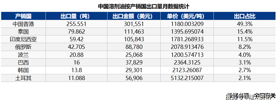 从出口来历国环境看,排名前五位的国度/地域有印度尼西亚亚、中国、波兰,俄罗斯和泰国约占出口总量的88%,中国国内溶剂油出口次要地域,占出口总量的49%。