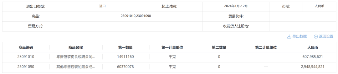 此中,2024年宠物食物的进口总金额为35。56亿元,同比2023年的40。12亿元下降了11。37%;2024年宠物食物的进口总量达7。52万吨,同比2023年的8。69万吨下降了约13。46%。