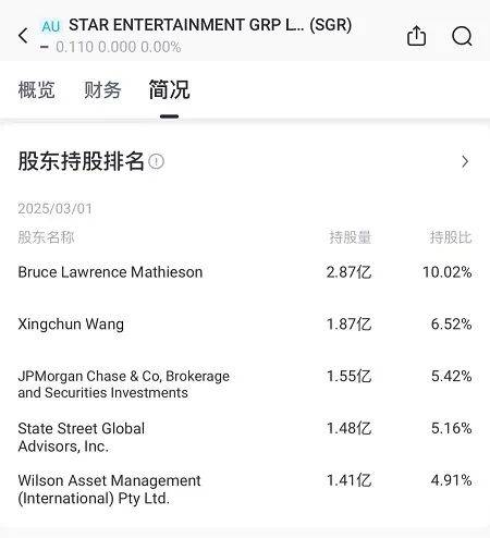 二级市场上,The Star Entertainment股价由7年前的6。4元高位,下跌至停牌前的0。11澳元,市值缩水至3亿澳元摆布。