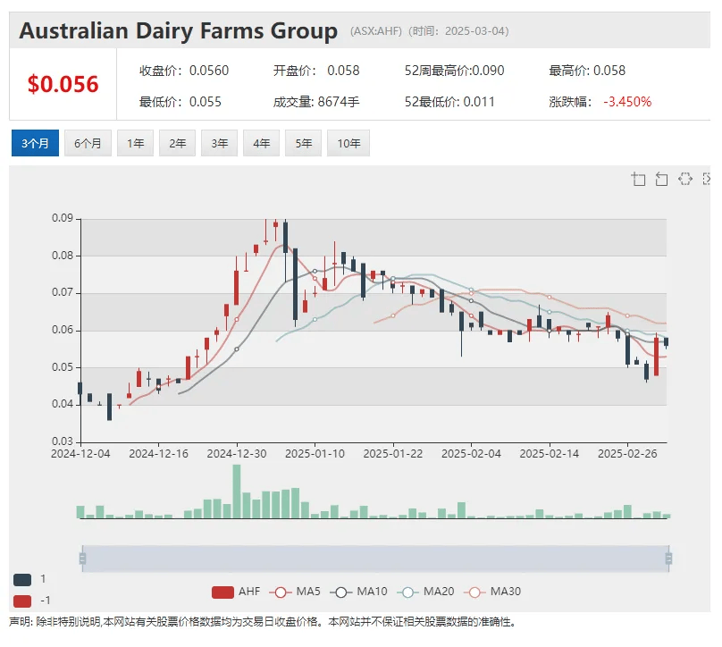 澳华财经正在线数据库显示,Australian Dairy Nutritionals Ltd (ASX股票代码!AHF)为垂曲一体化运营的乳成品集团,旗下具有无机奶牛场和无机A2奶牛场资产,并正在维州Camperdown设有加工场。